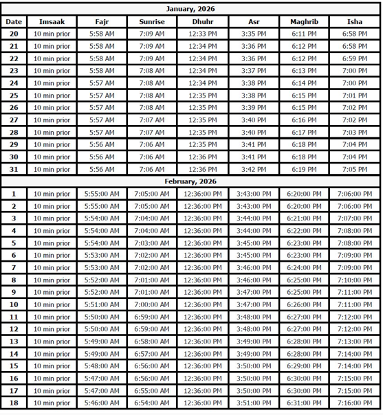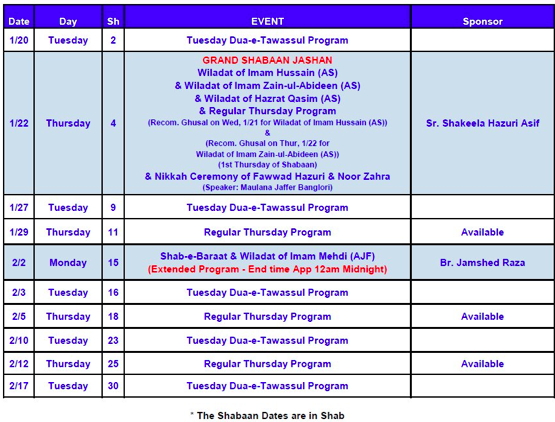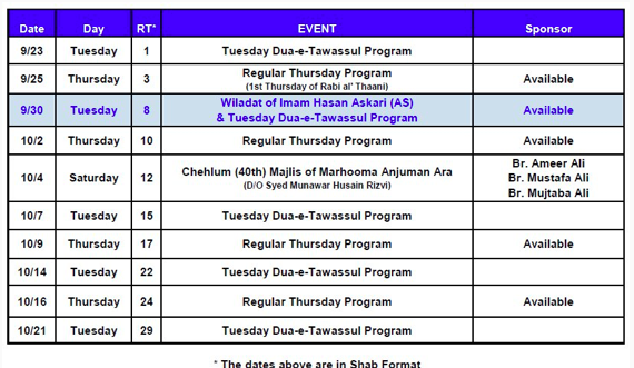 Asslaam-o-Alaykum, Please see below IJA schedule of events.
